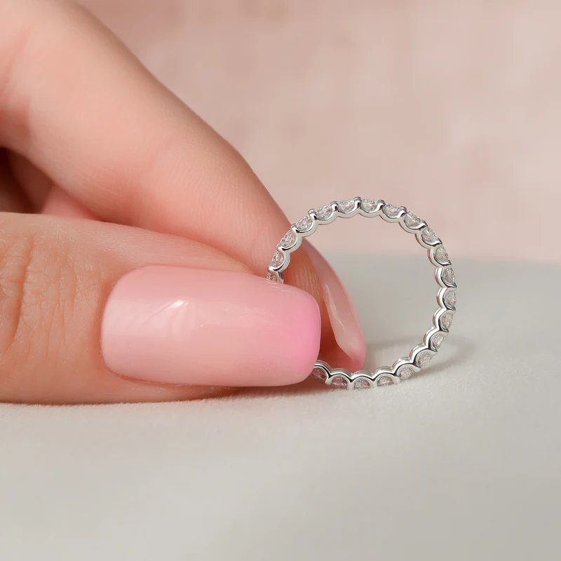 With its glorious luster and glittering stones, the Round U Prong Eternity projects timeless glamor and sophistication. The perfectly cut round diamonds create a display of light and brilliance that is simply breathtaking while the intricate beaded prongs add an extra layer of elegance, making this piece a true masterpiece. Being equal parts dainty and dazzling, this ring belongs in every fashionista’s collection.