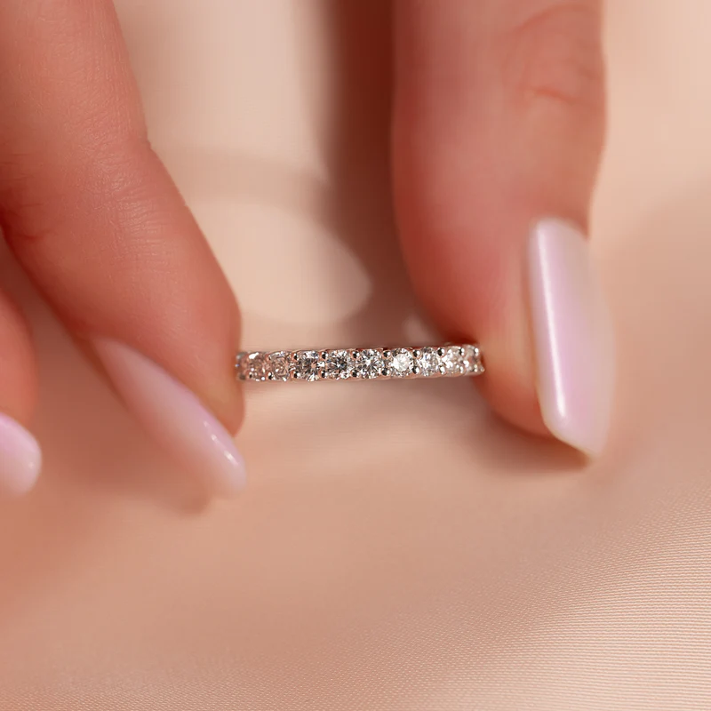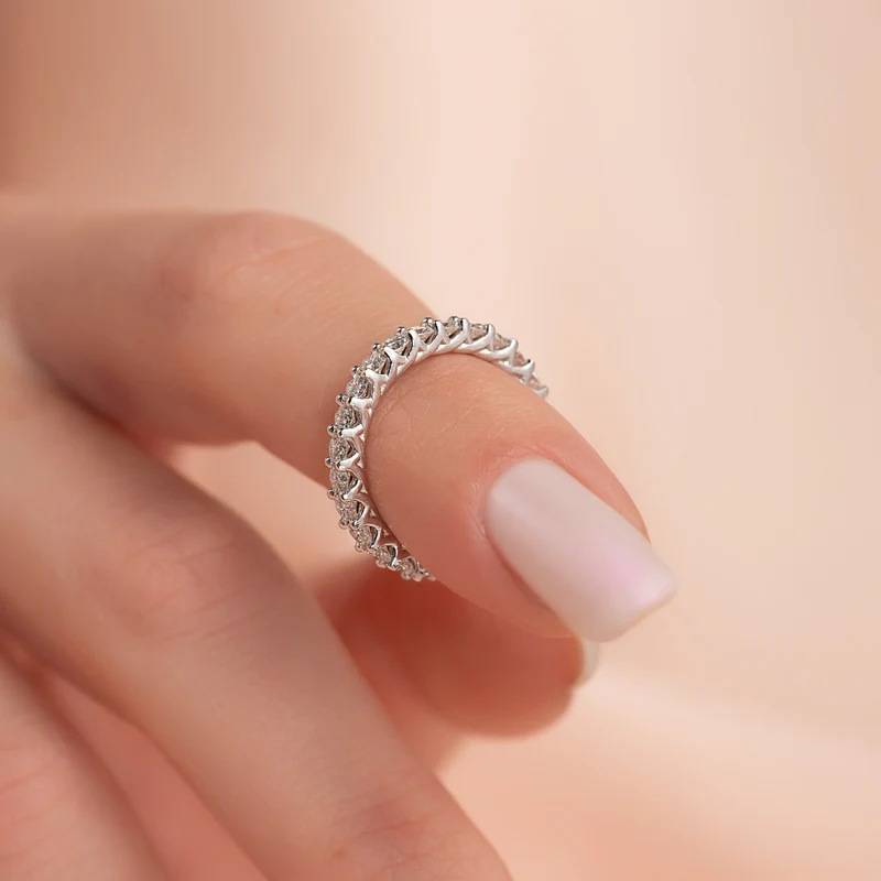Introducing the timeless and luxurious Round Bezel Eternity. The bezel setting and round cut diamonds are a fiery and opulent combination guaranteed to deliver maximum sparkle and brilliance. Whether as an anniversary or wedding band, this eternity ring will take your breath away with its timeless beauty and undeniable glamor. Treat yourself or someone special to the ultimate symbol of love and luxury with the Round Bezel Eternity.
