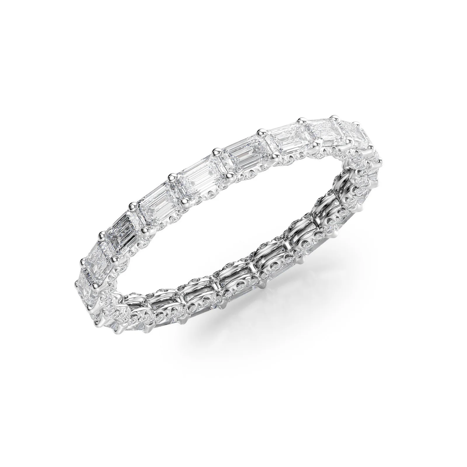 3.8ct East West Emerald U Pave Prong Eternity