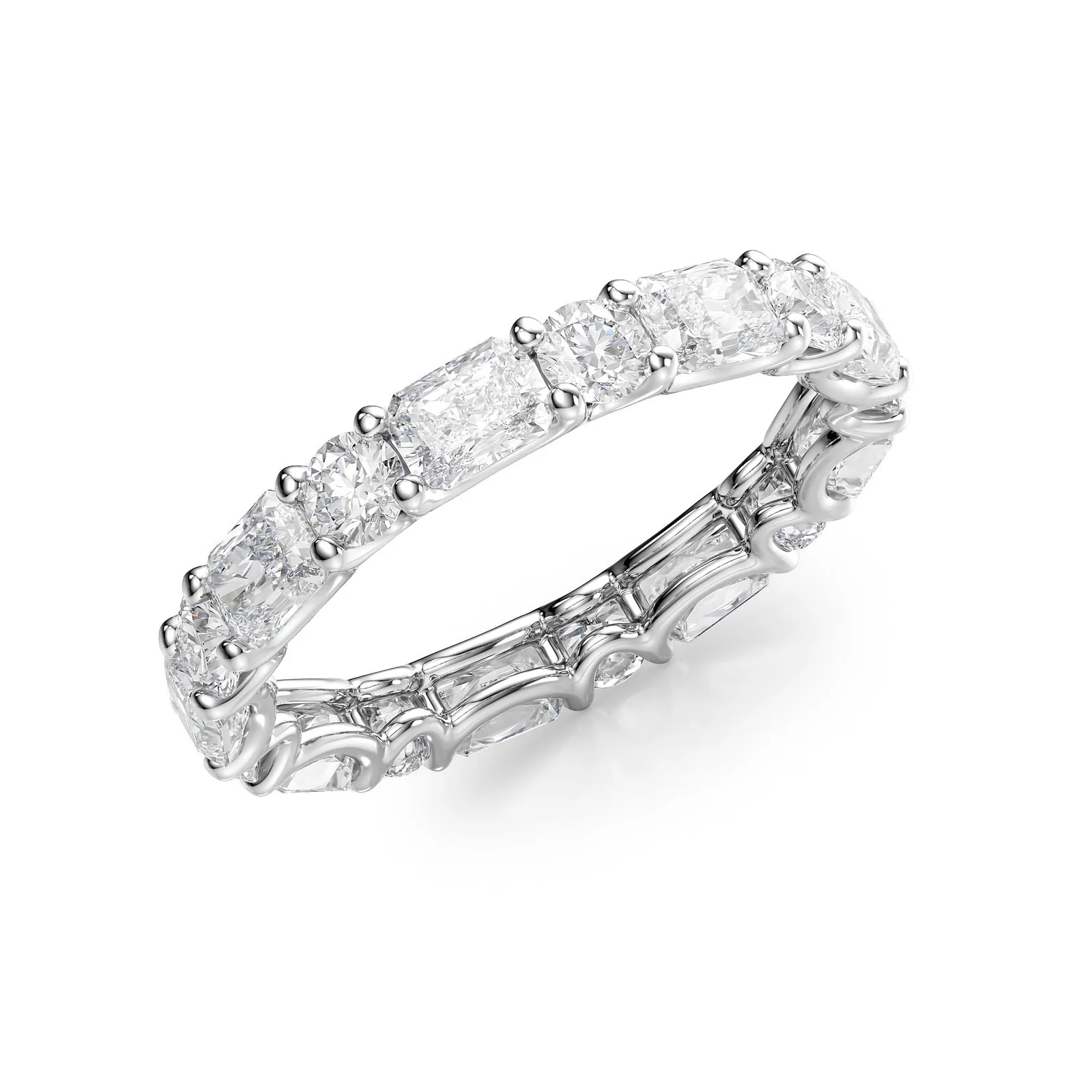 Elegance meets brilliance with the Alternating Radiant and Round U Prong Eternity Ring. This exquisite piece features alternating radiant-cut and round brilliant diamonds, each carefully set in a U prong setting to enhance their luminosity. A symbol of everlasting love, this ring combines classic diamond cuts with the unique sparkle of an elegant setting, making it an ideal choice for those who cherish both traditional beauty and contemporary flair.