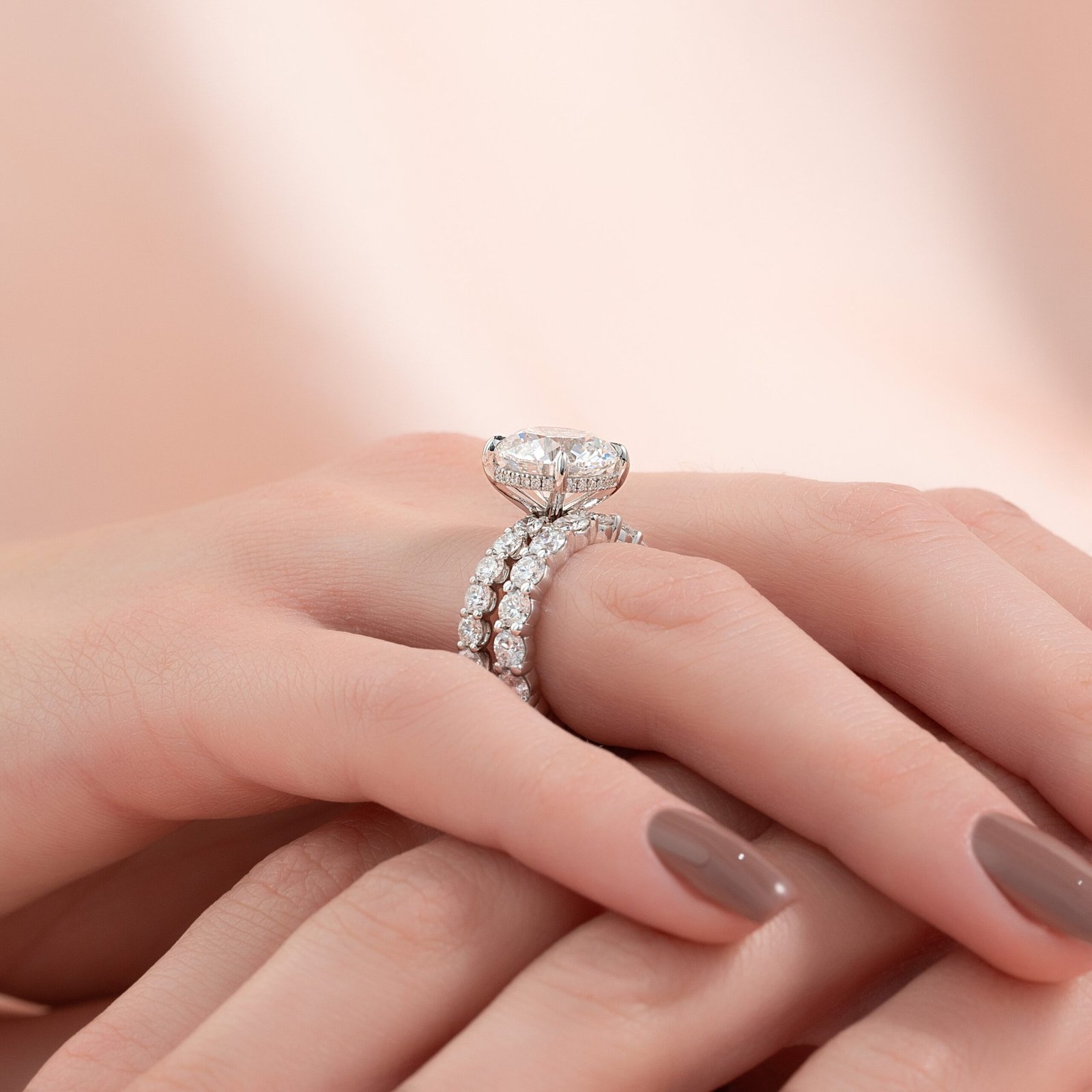 The Adelle Set With A 1.0 Carat Round 14K White Gold Moissanite