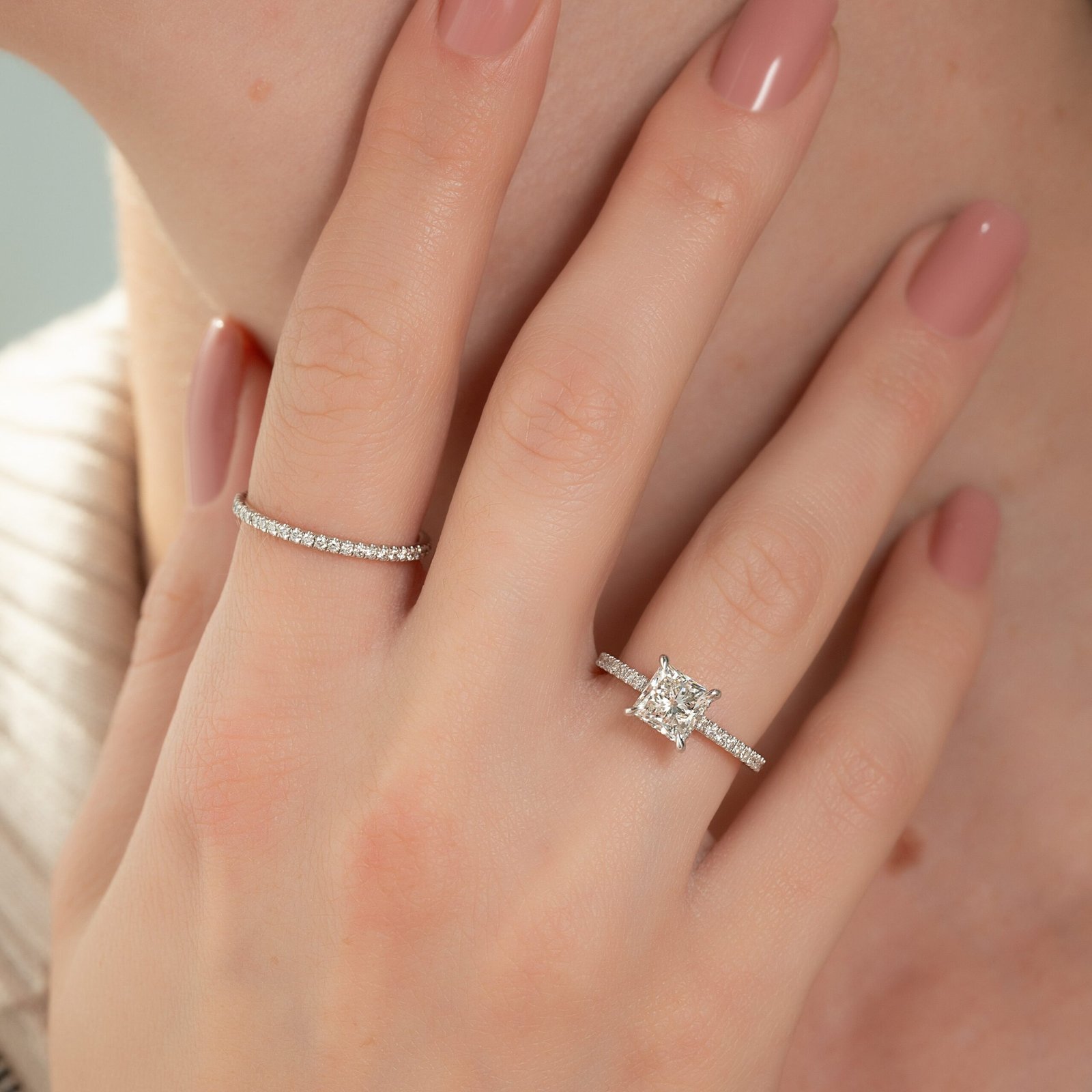 The Aline Set With A 1.0 Carat Princess 14K White Gold Lab Diamond