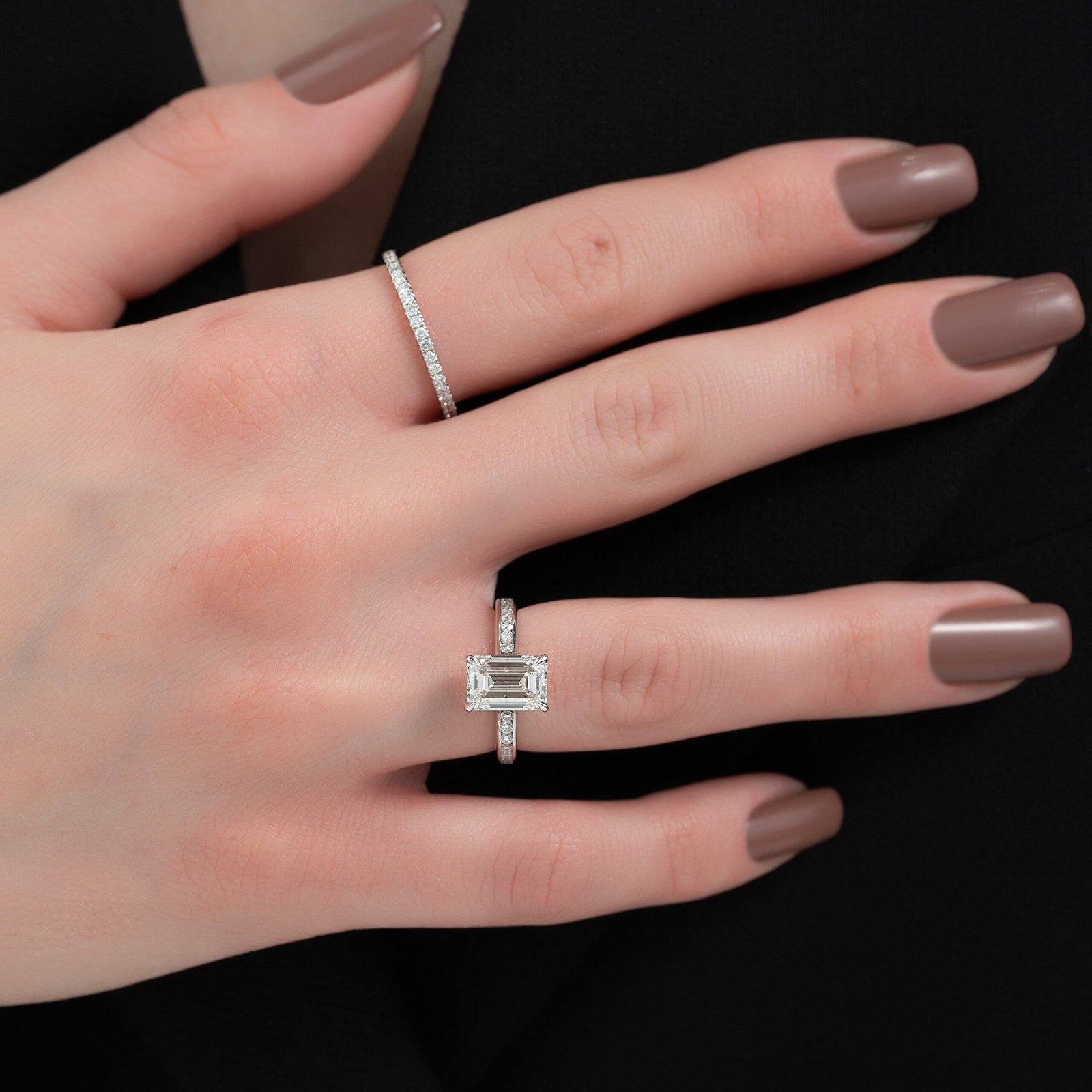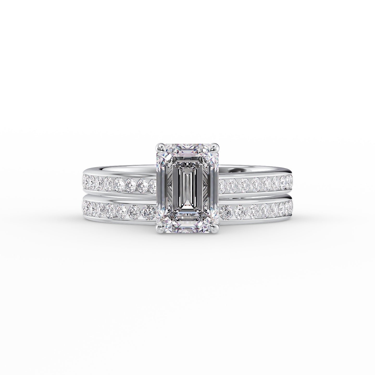 The Cameron Set With A 1.0 Carat Emerald 14K White Gold Lab Diamond