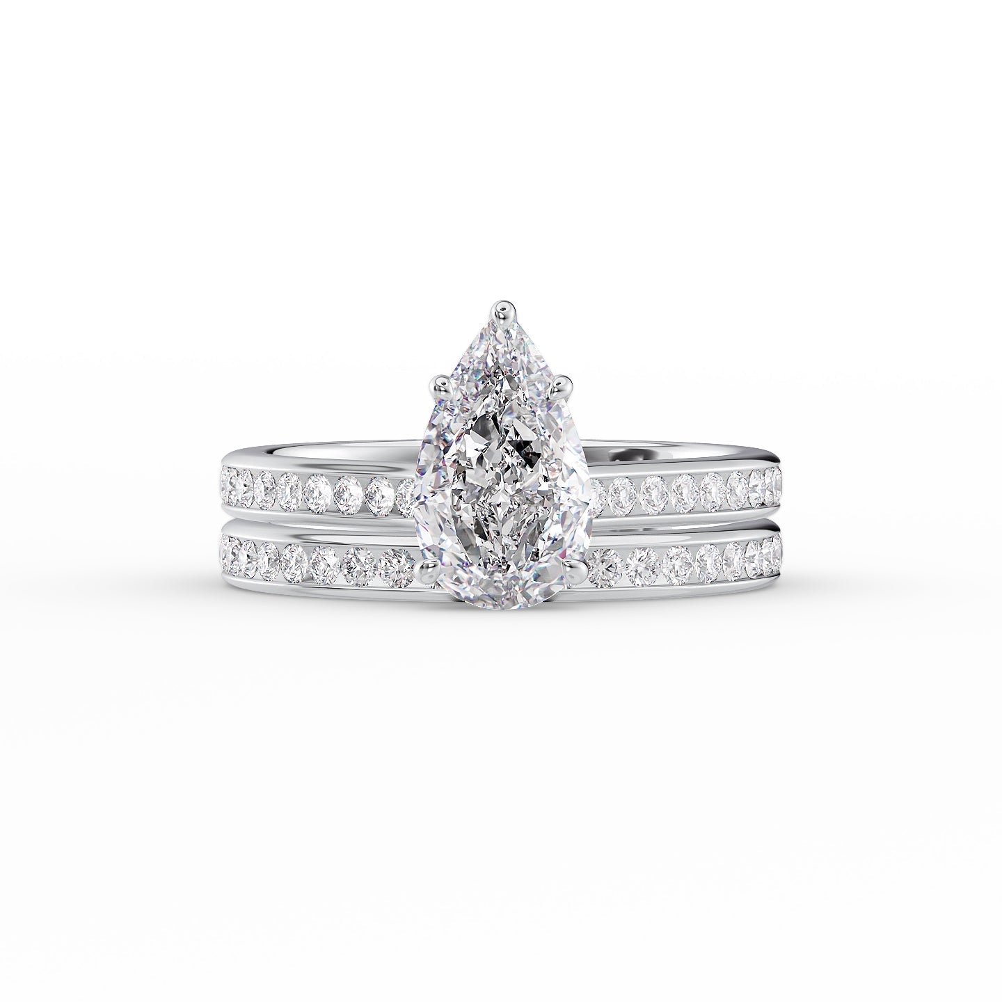 The Cameron Set With A 1.0 Carat Pear 14K White Gold Lab Diamond