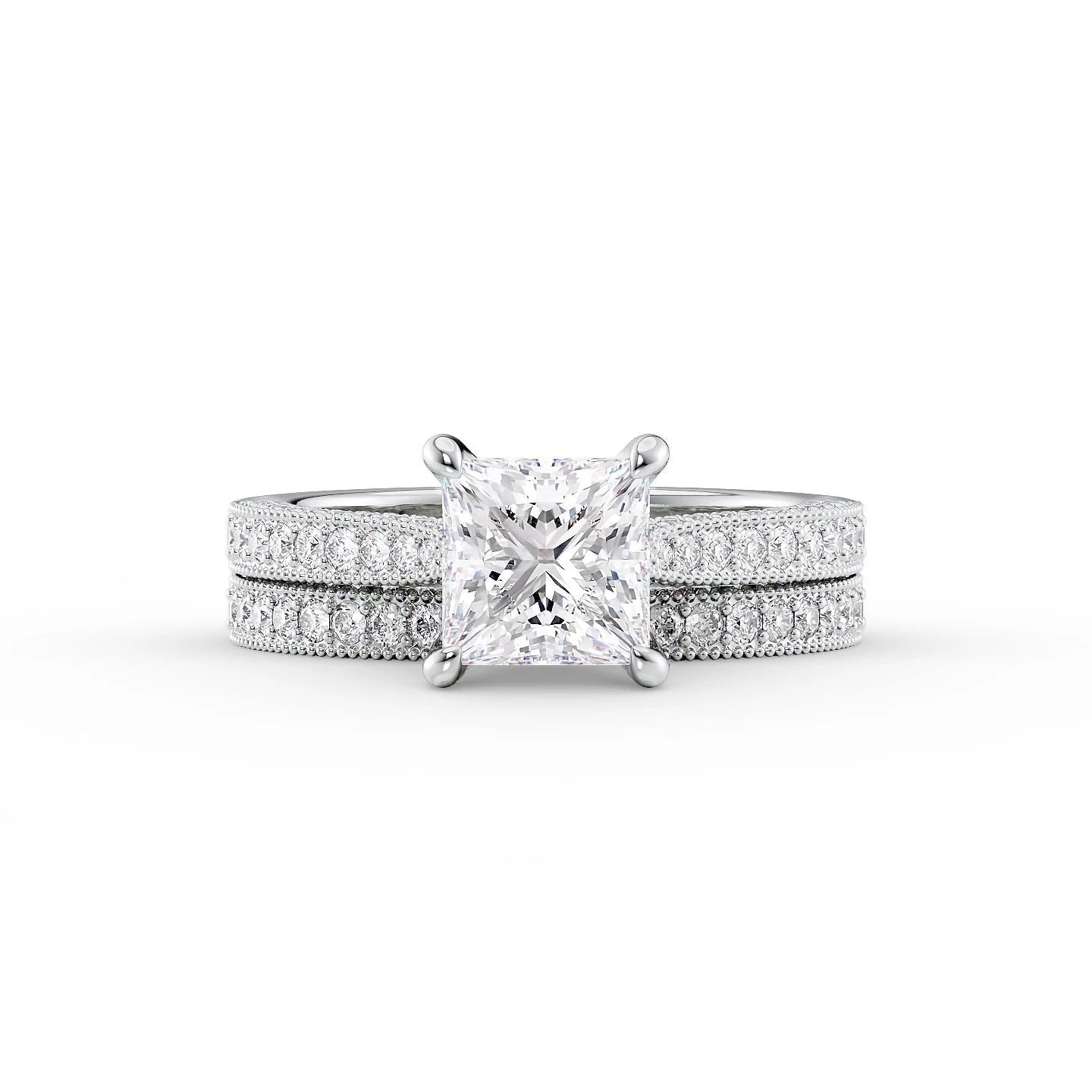 The Catherine Set With A 1.0 Carat Princess 14K White Gold Lab Diamond