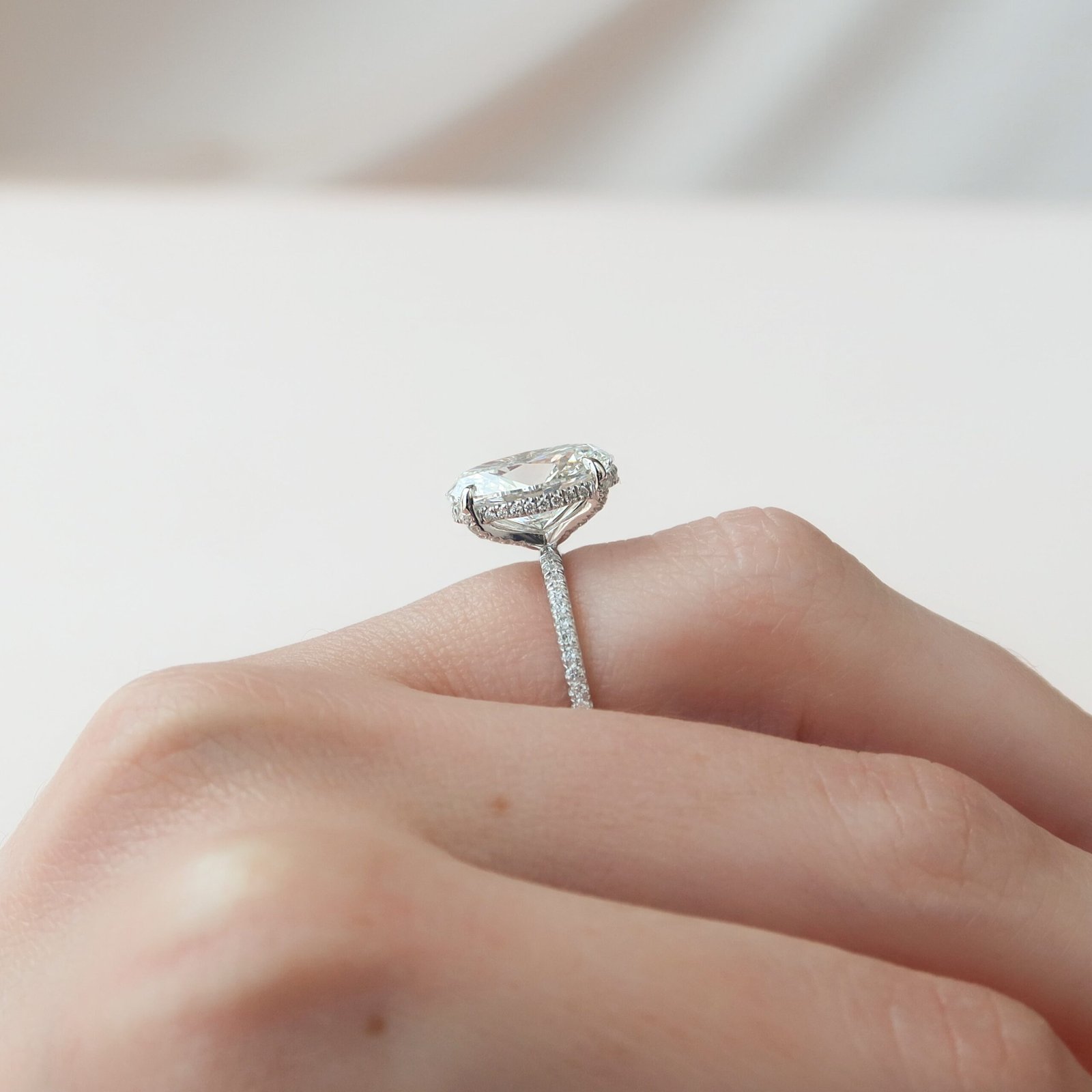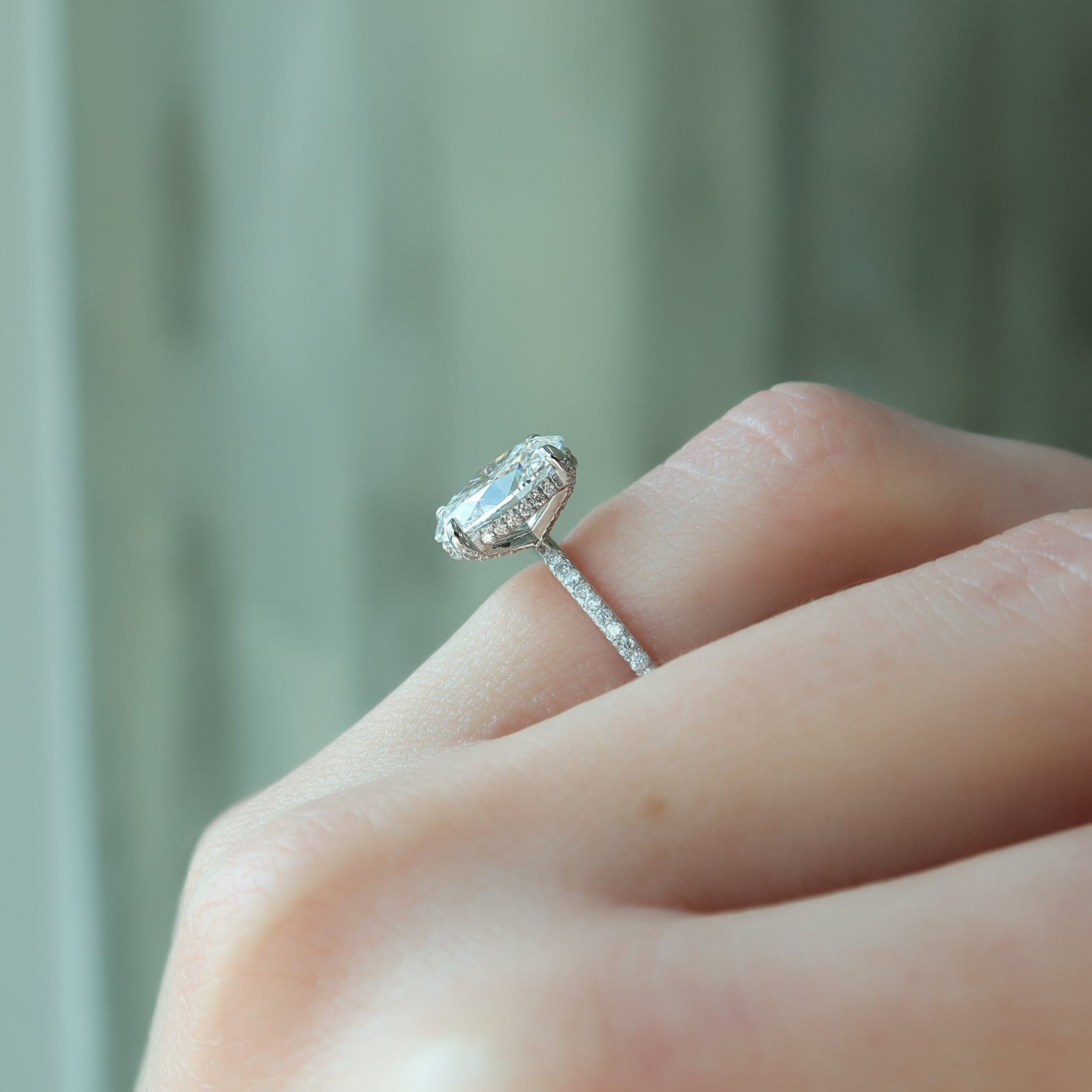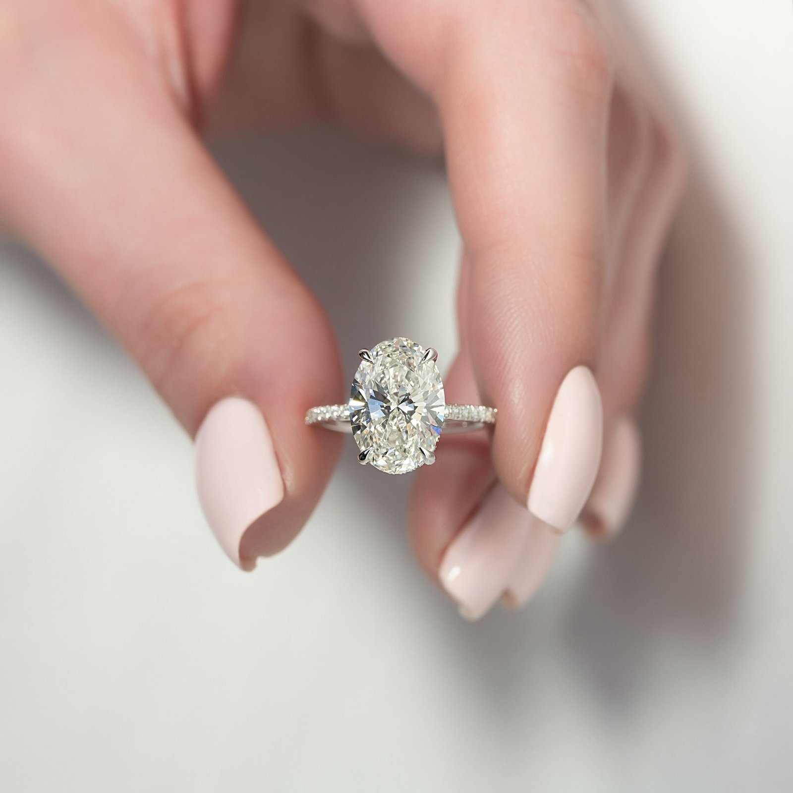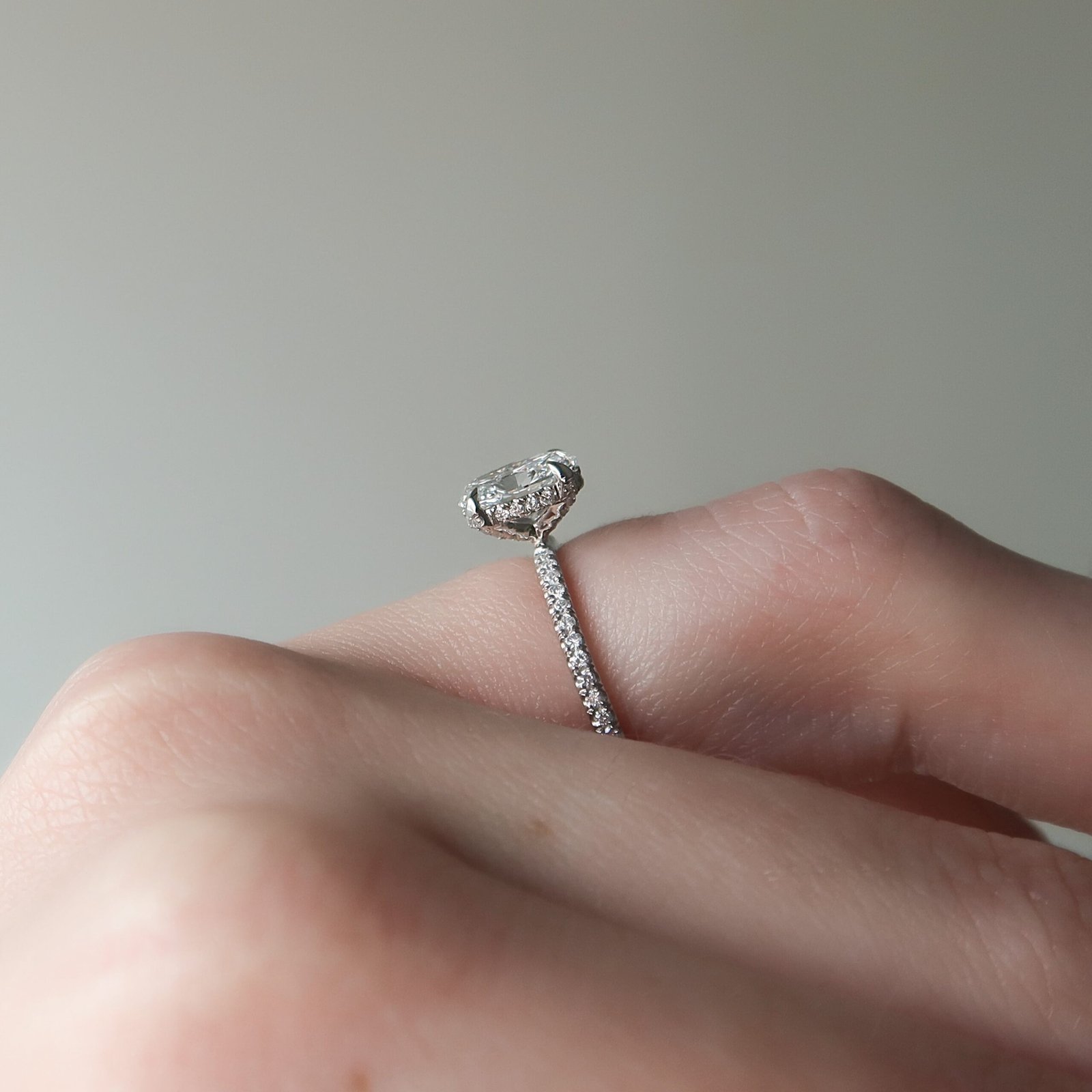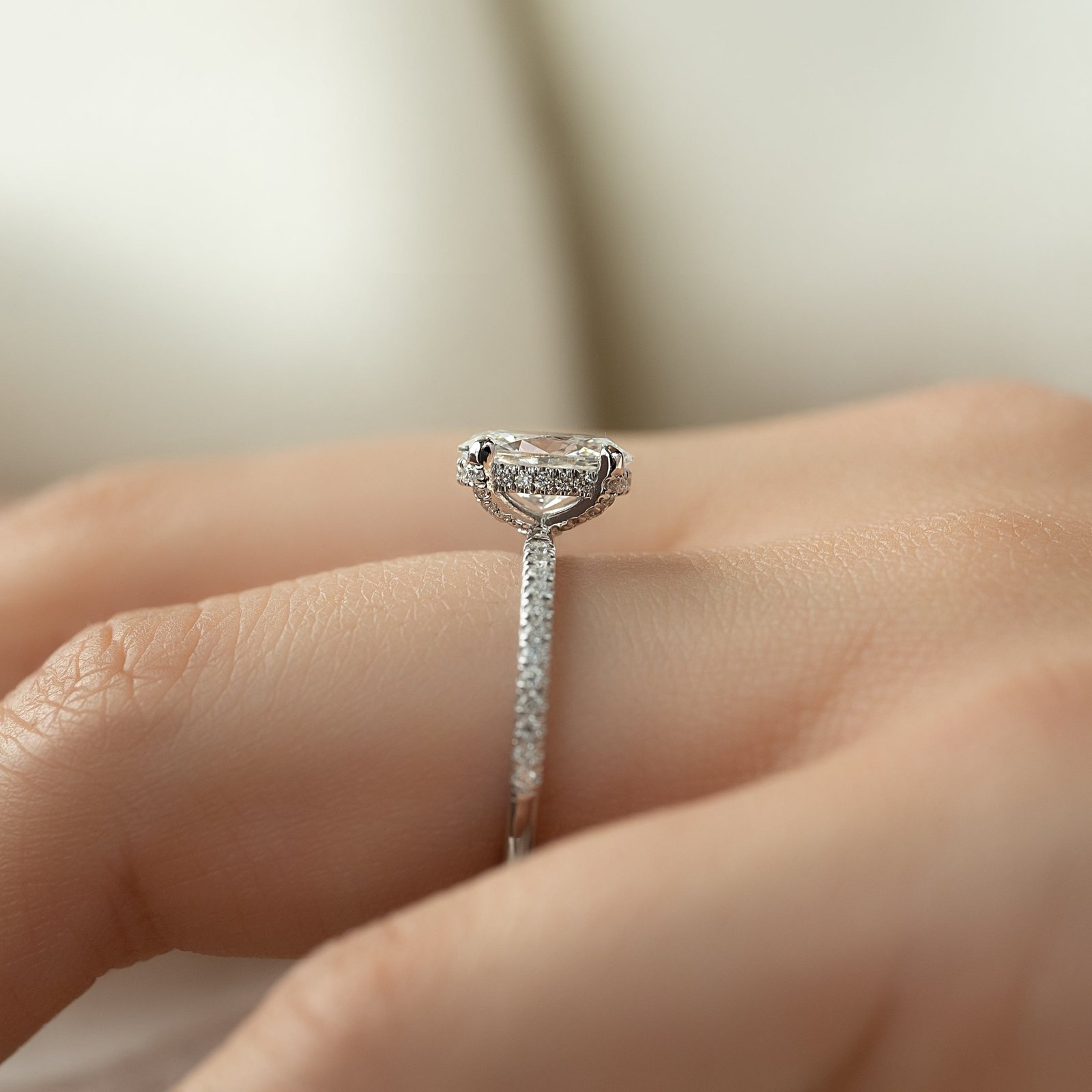 The Pave Crown Kamellie Set With A 1.0 Carat Oval 14K White Gold Lab Diamond