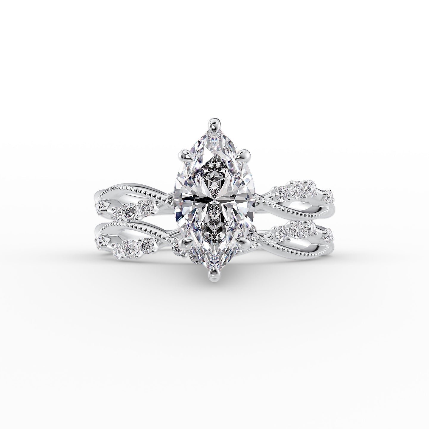The Daisy Set With A 1.0 Carat Marquise 14K White Gold Lab Diamond