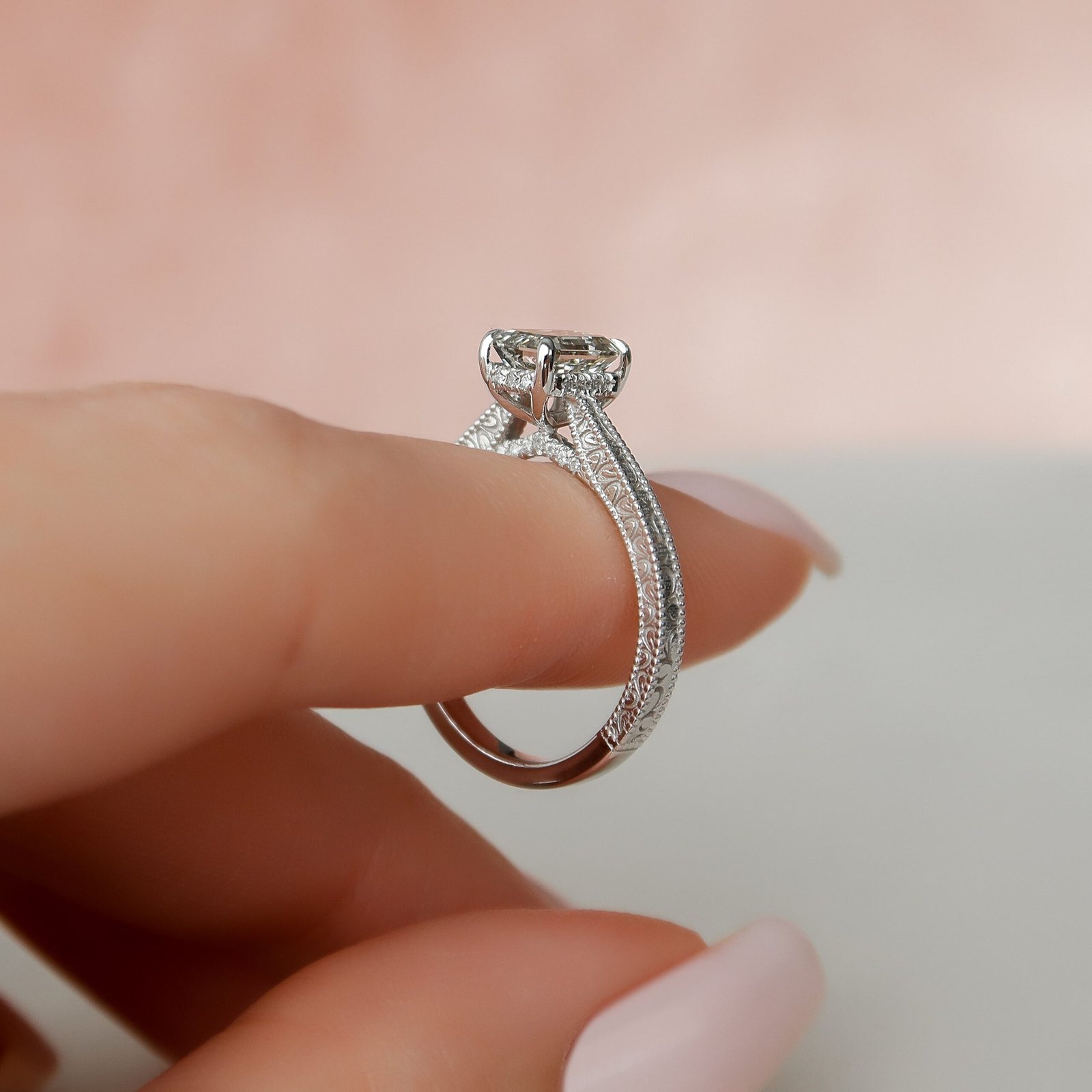 The Elizabeth Set With A 1.0 Carat Emerald 14K White Gold Lab Diamond