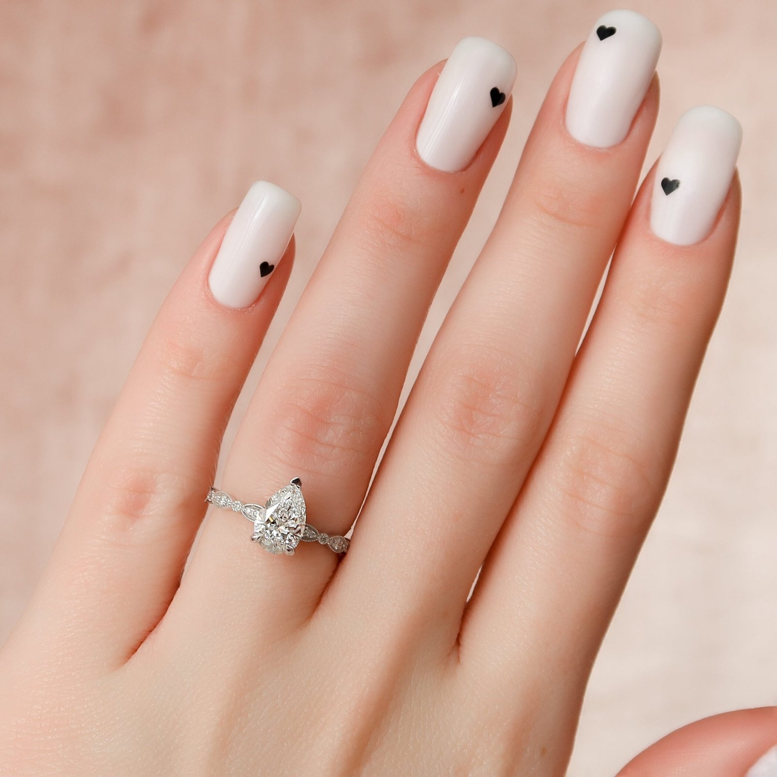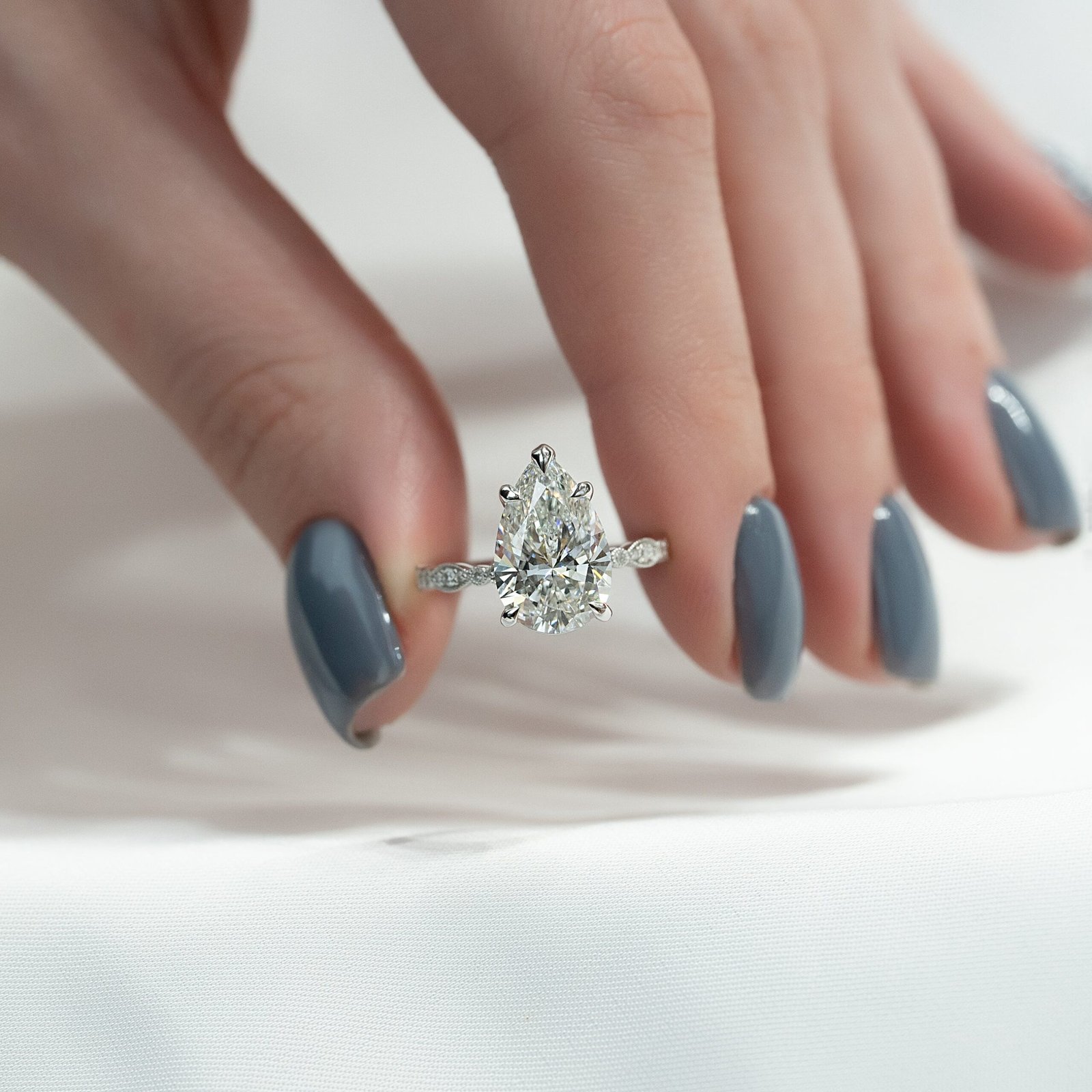 The Jasmine Set With A 1.0 Carat Pear 14K White Gold Lab Diamond