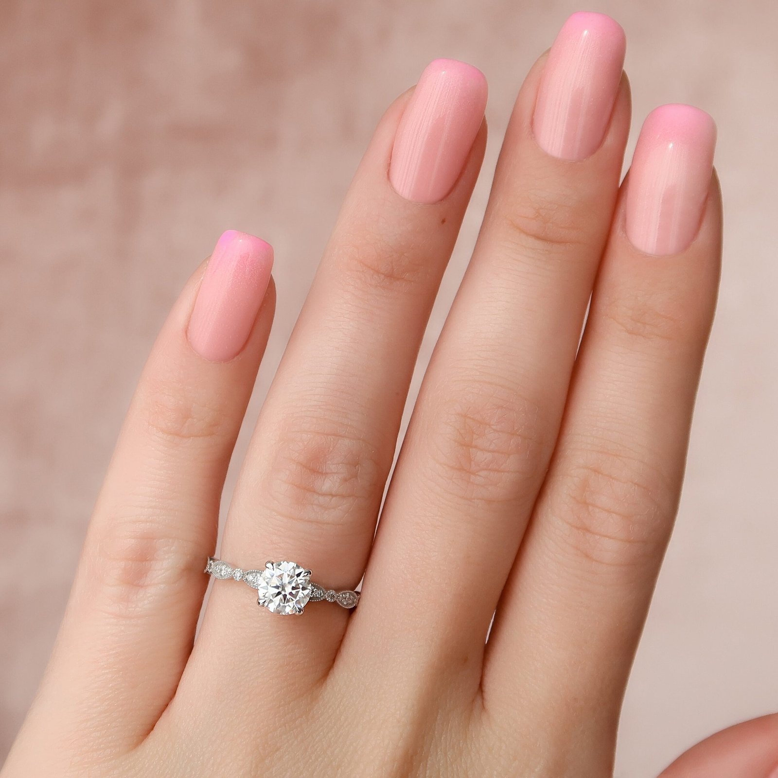 The Jasmine Set With A 1.0 Carat Round 14K White Gold Lab Diamond