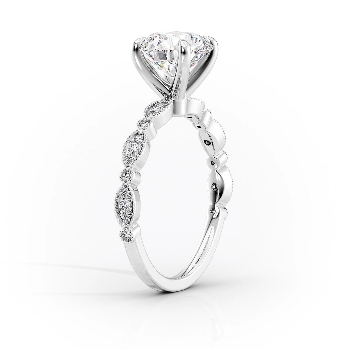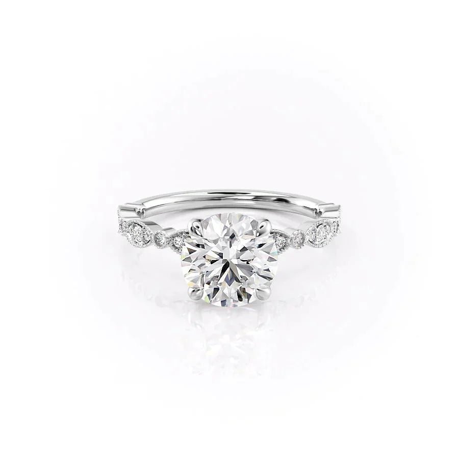 The Jasmine Set With A 1.0 Carat Round 14K White Gold Moissanite