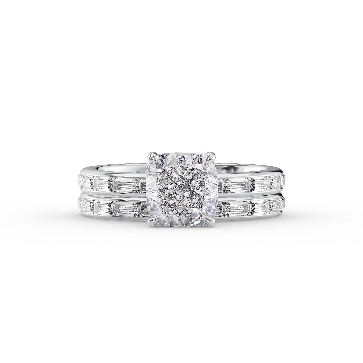 The Jennifer Set With A 1.0 Carat Cushion 14K White Gold Lab Diamond