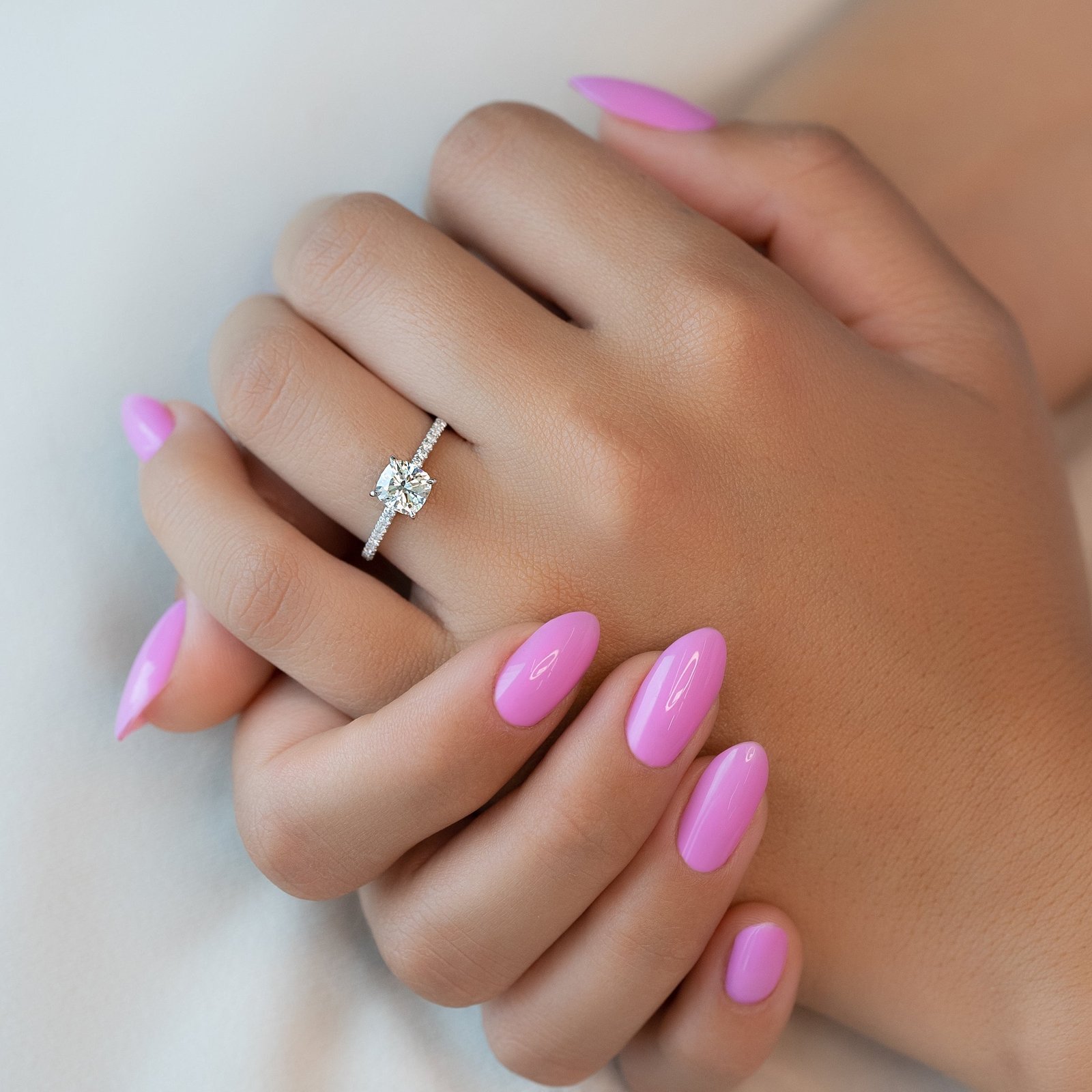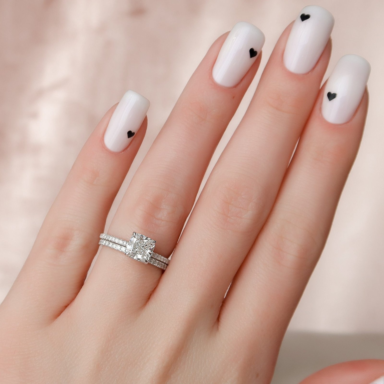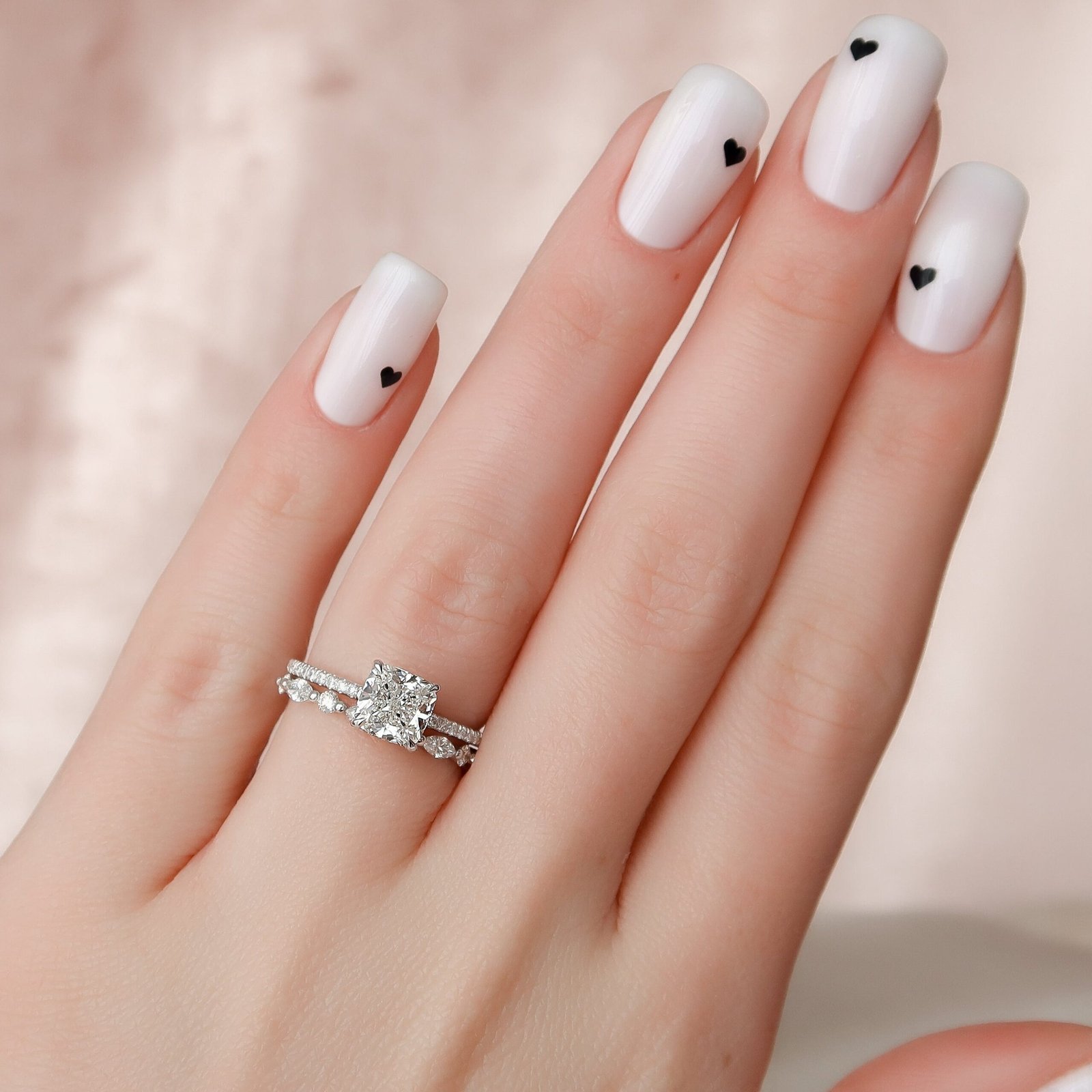 The Pave Kamellie Set With A 1.0 Carat Cushion 14K White Gold Lab Diamond