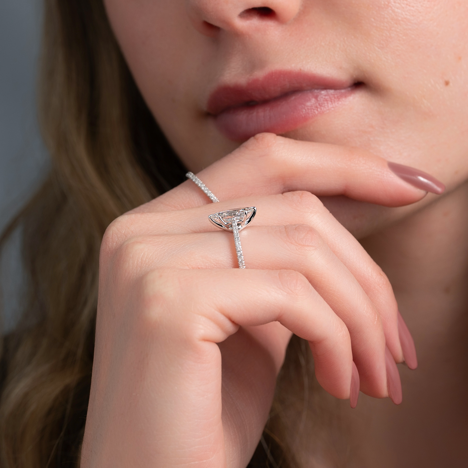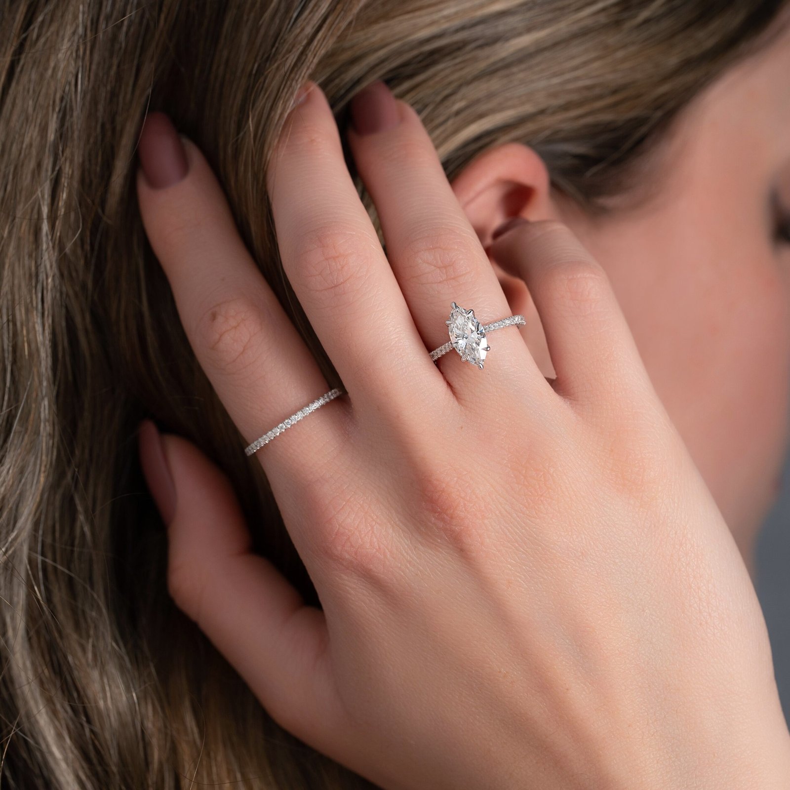 The Pave Lexie Set With A 1.0 Carat Marquise 14K White Gold Lab Diamond