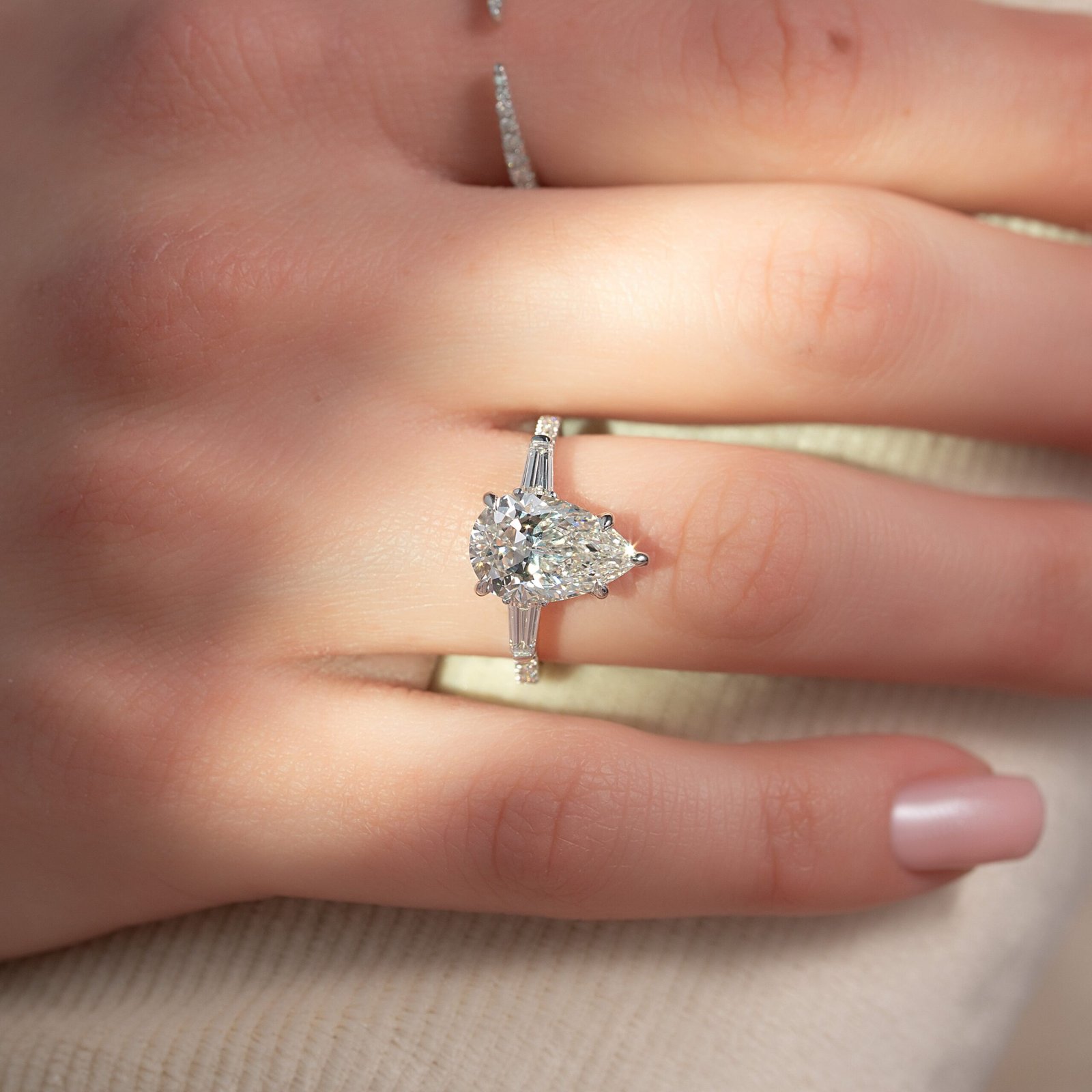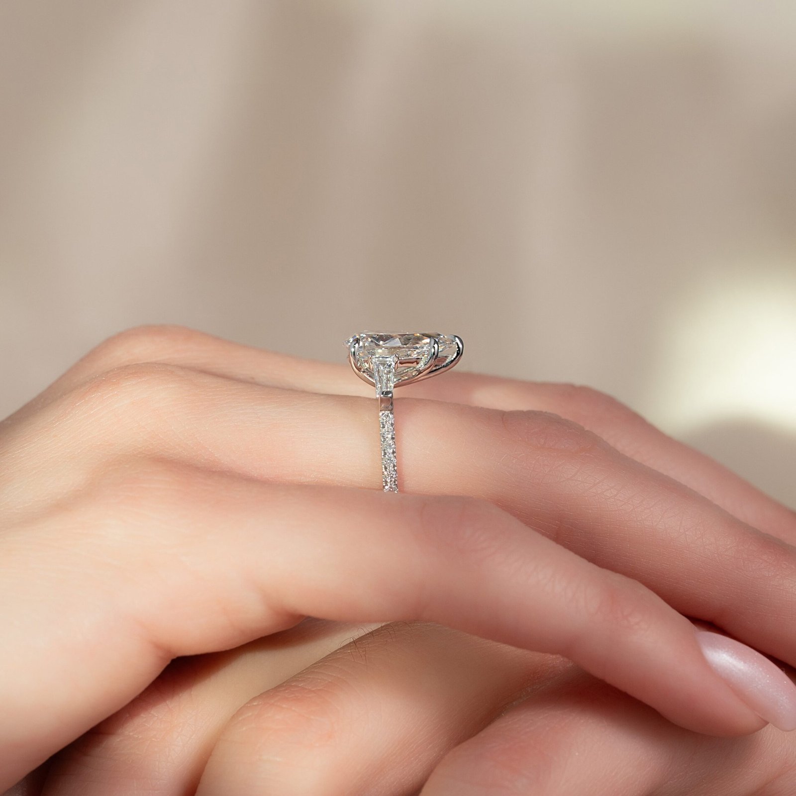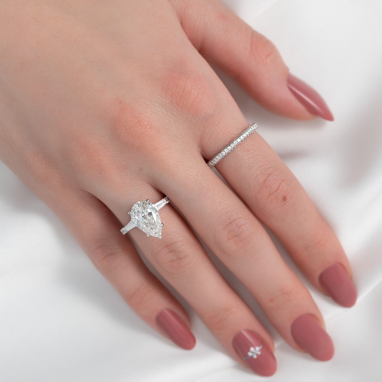 The Pave Liv Set With A 1.0 Carat Pear 14K White Gold Lab Diamond