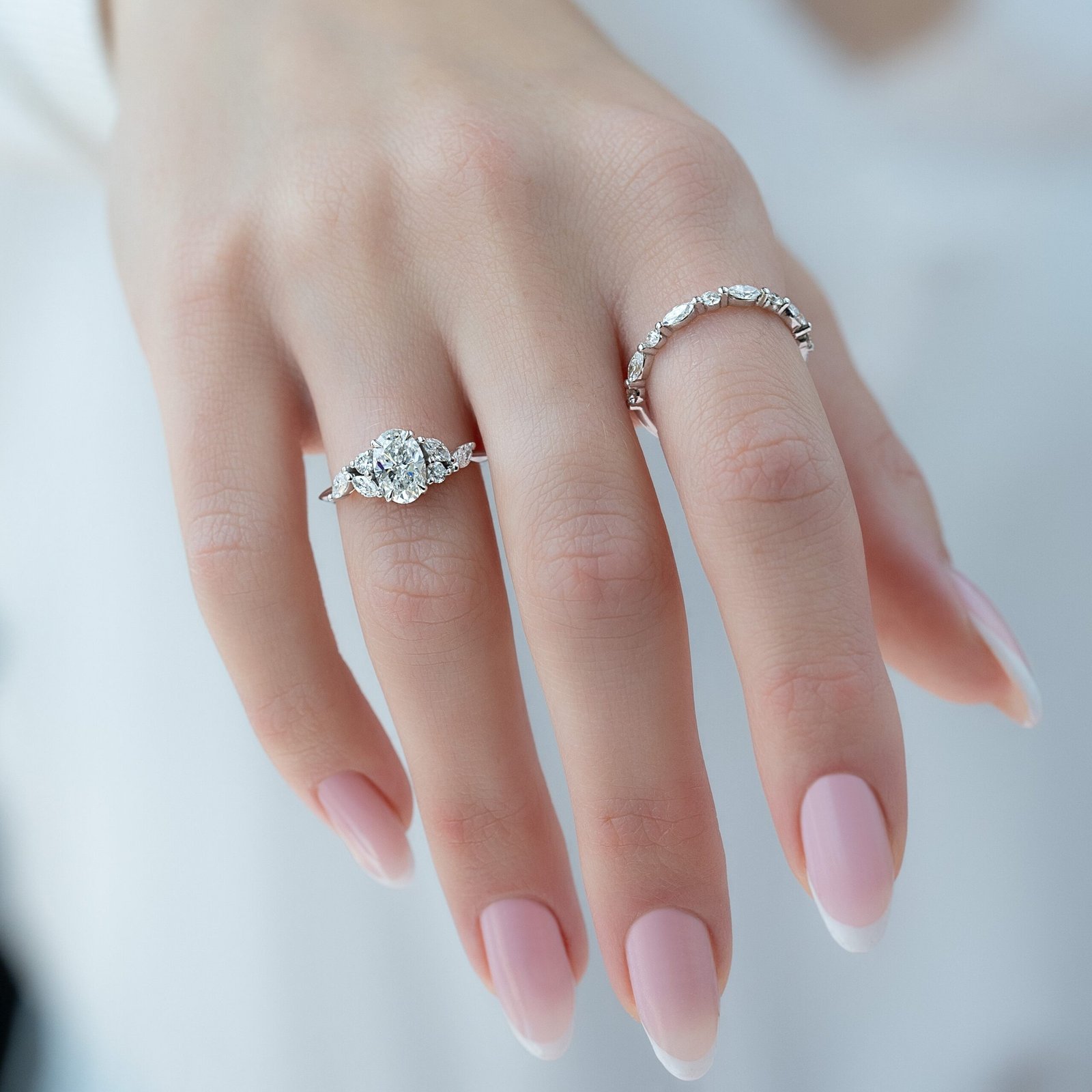 The Melissa Set With A 1.0 Carat Oval 14K White Gold Lab Diamond