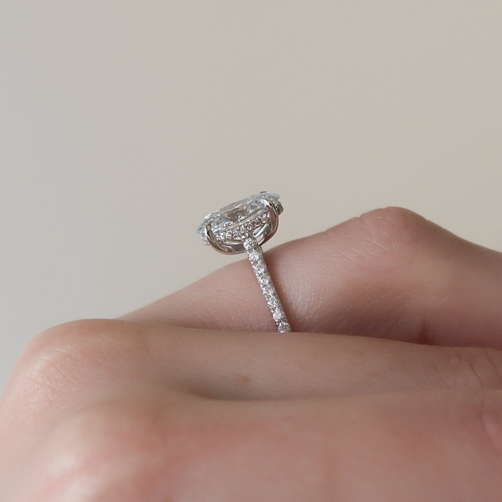 The Pave Natalie Set With A 1.0 Carat Oval 14K White Gold Lab Diamond