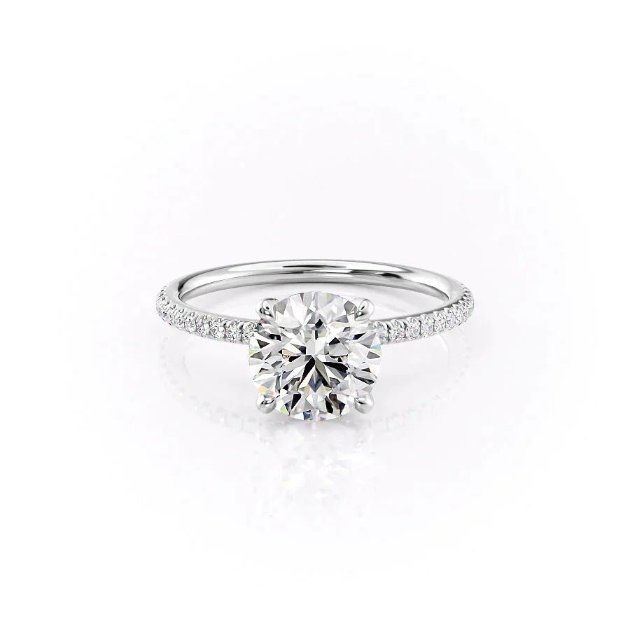 The Pave Petal Kamellie Set With A 4.5 Carat Round 14K White Gold Moissanite