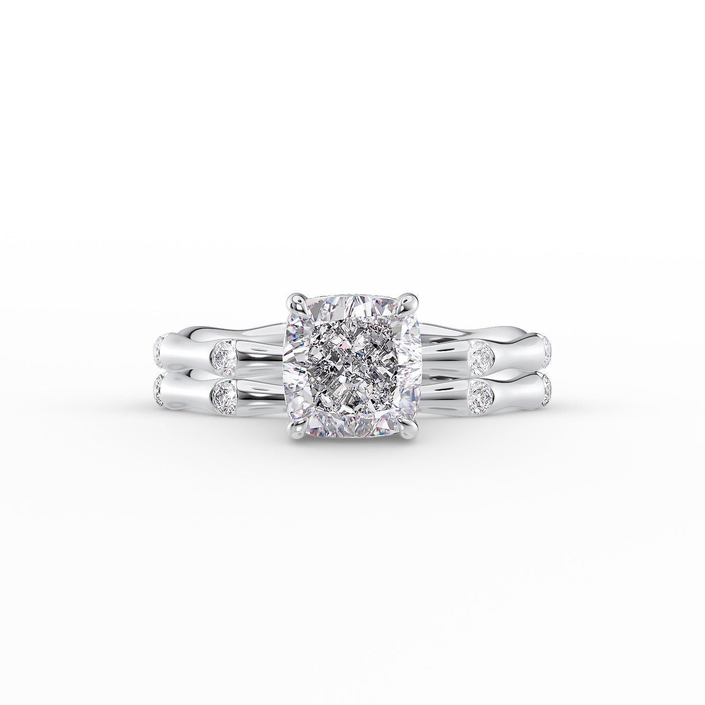 The Samantha Set With A 1.0 Carat Cushion 14K White Gold Lab Diamond