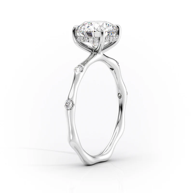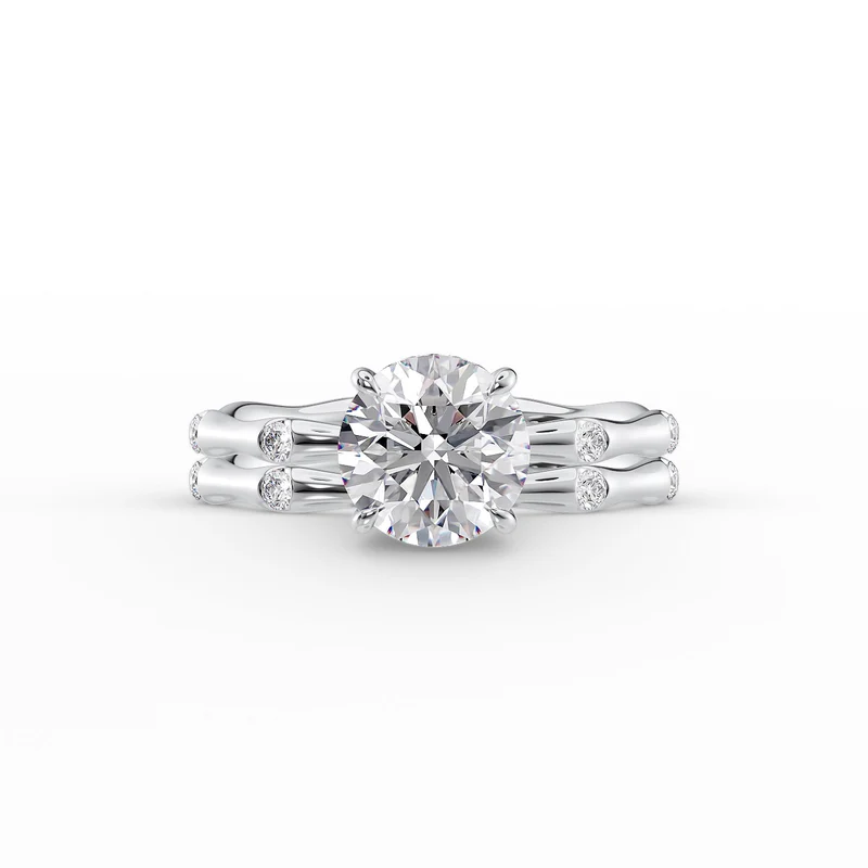 The Samantha Set With A 5.0 Carat Round 14K White Gold Moissanite