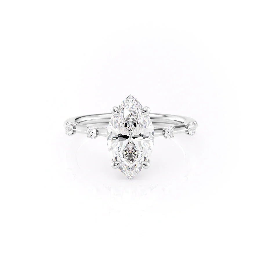 The Serena Set With A 3.5 Carat Marquise 18K White Gold Moissanite