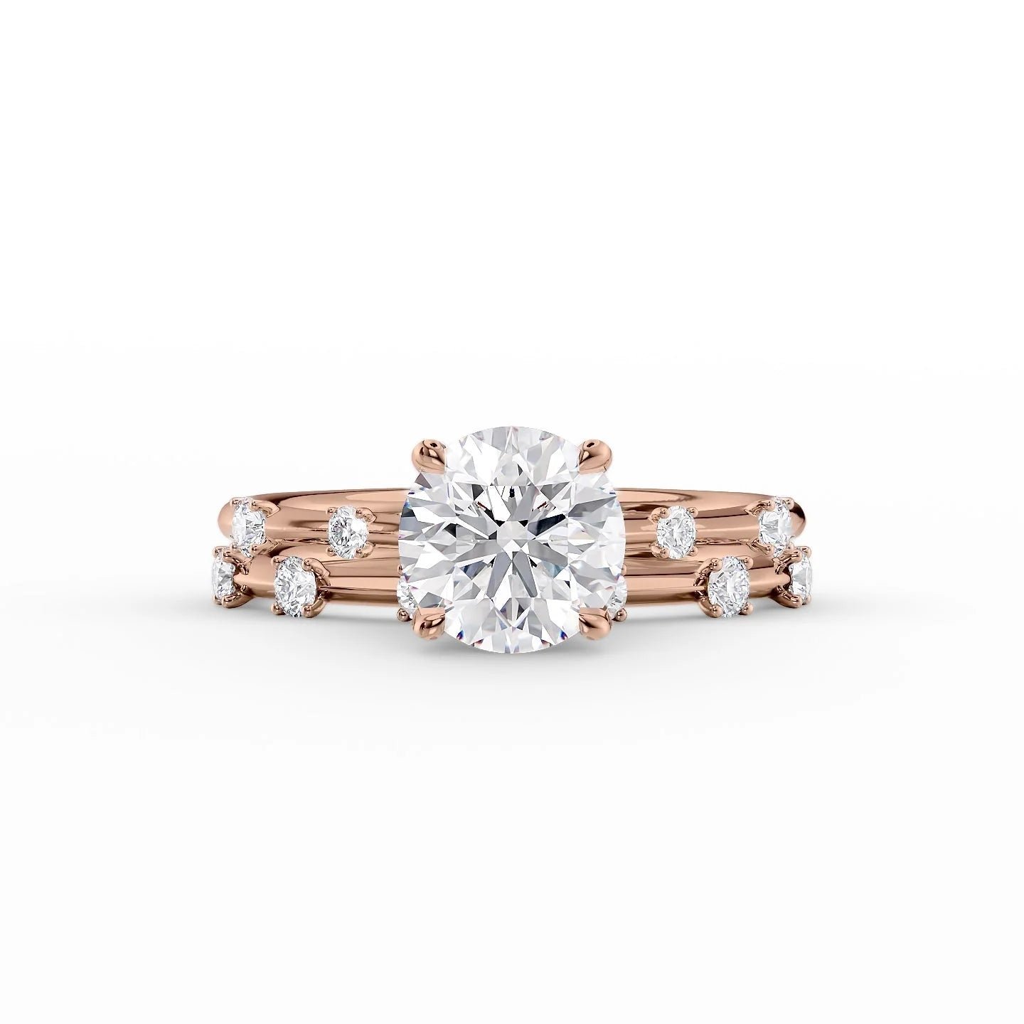 The Serena Set With A 1.0 Carat Round 14K Rose Gold Lab Diamond