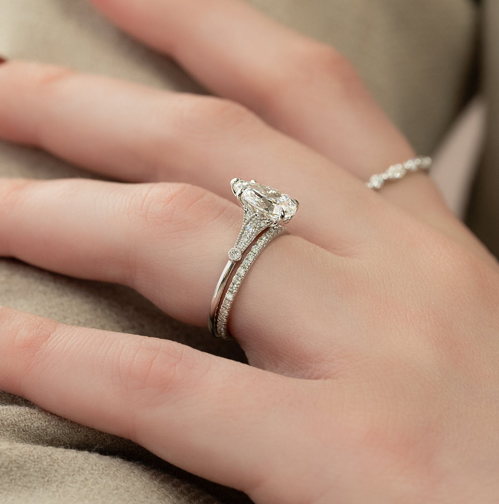 The Stephanie Set With A 1.0 Carat Pear 14K White Gold Lab Diamond