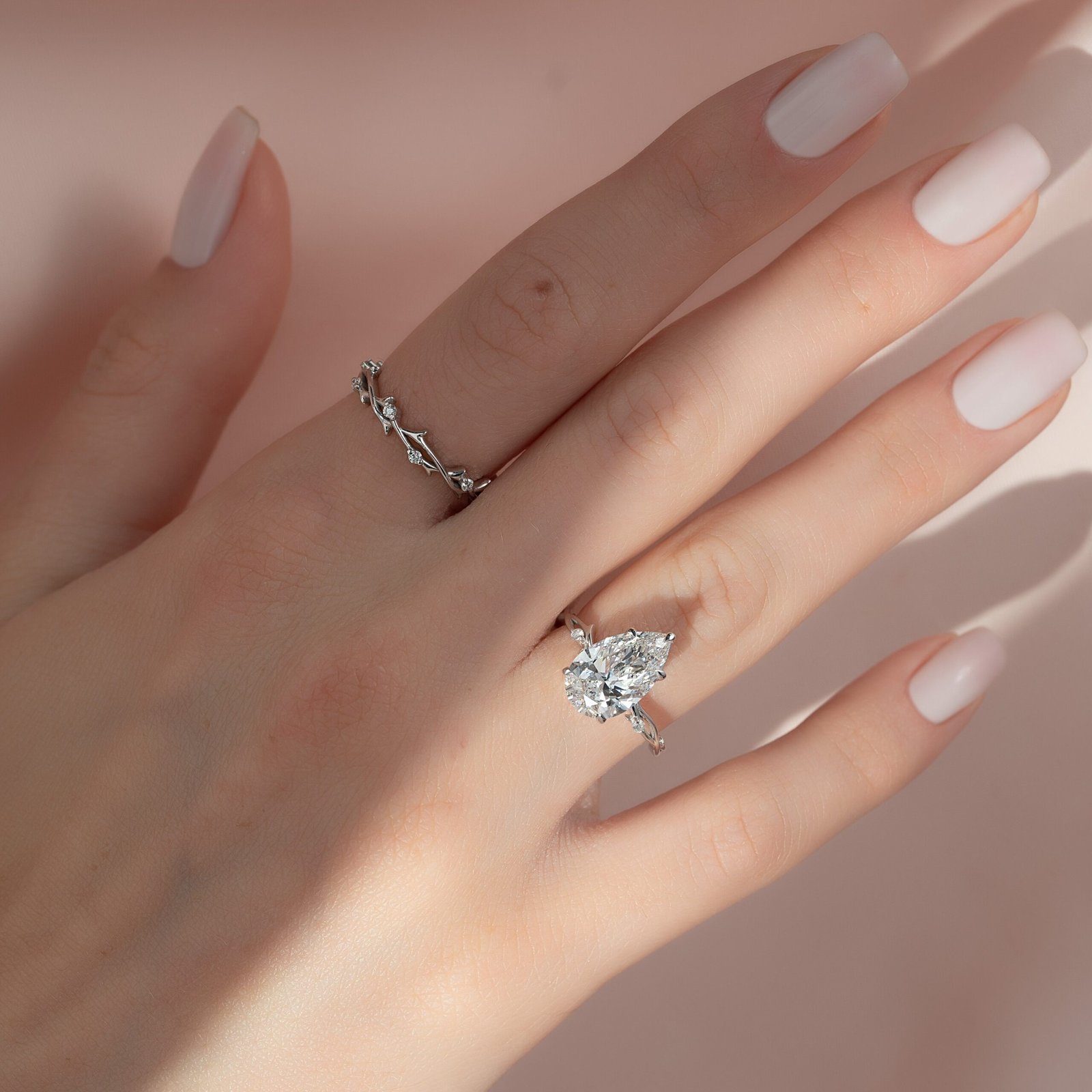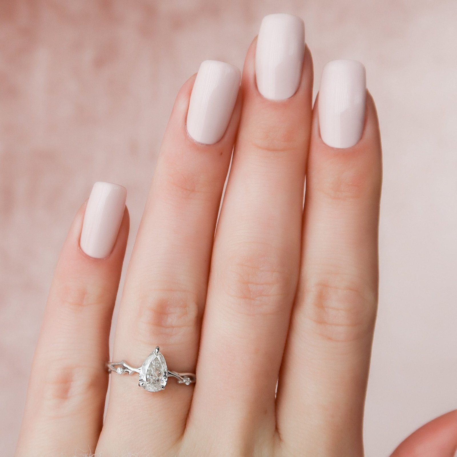 The Twig Set With A 1.0 Carat Pear 14K White Gold Lab Diamond