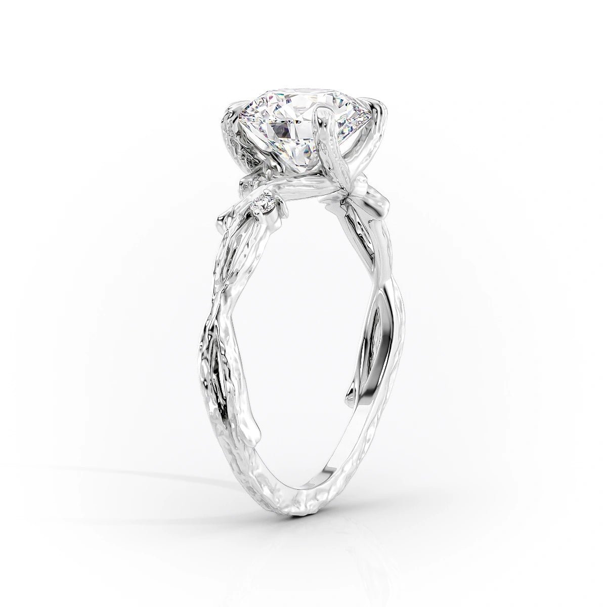 The Textured Twig Set With A 1.0 Carat Princess 14K White Gold Lab Diamond