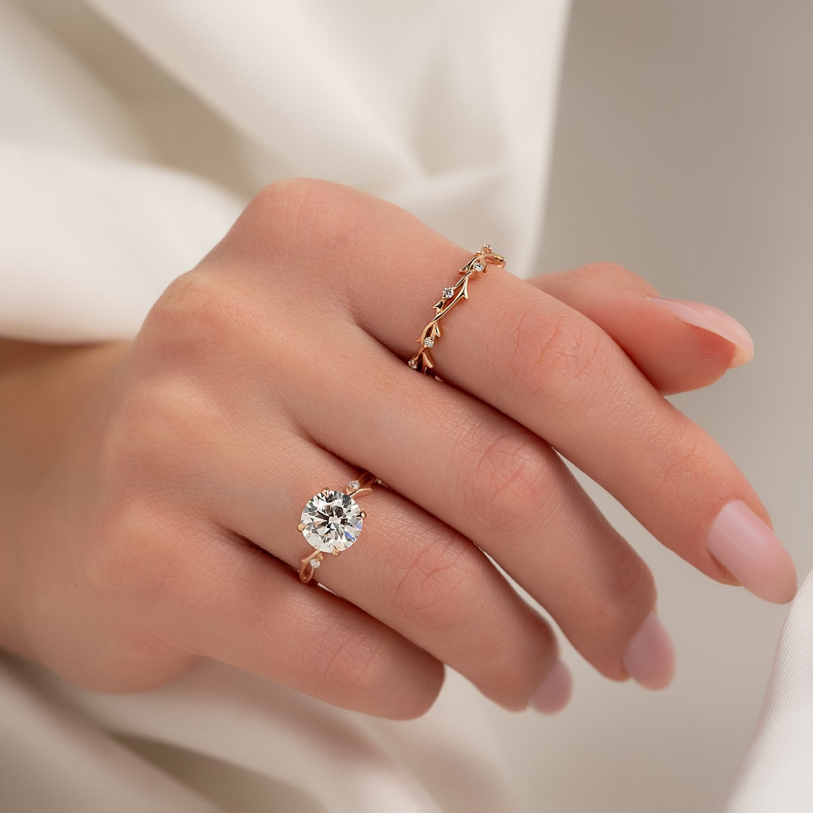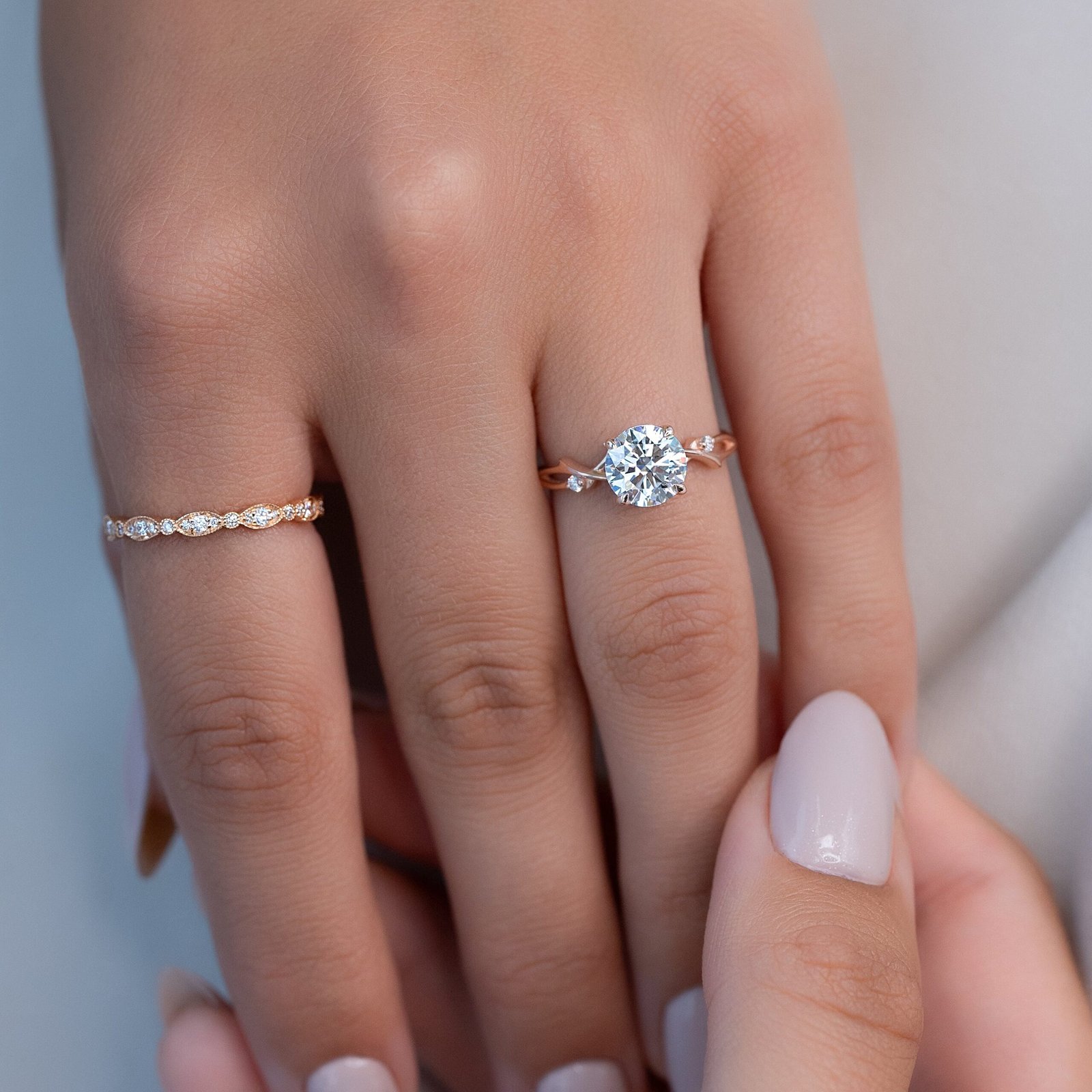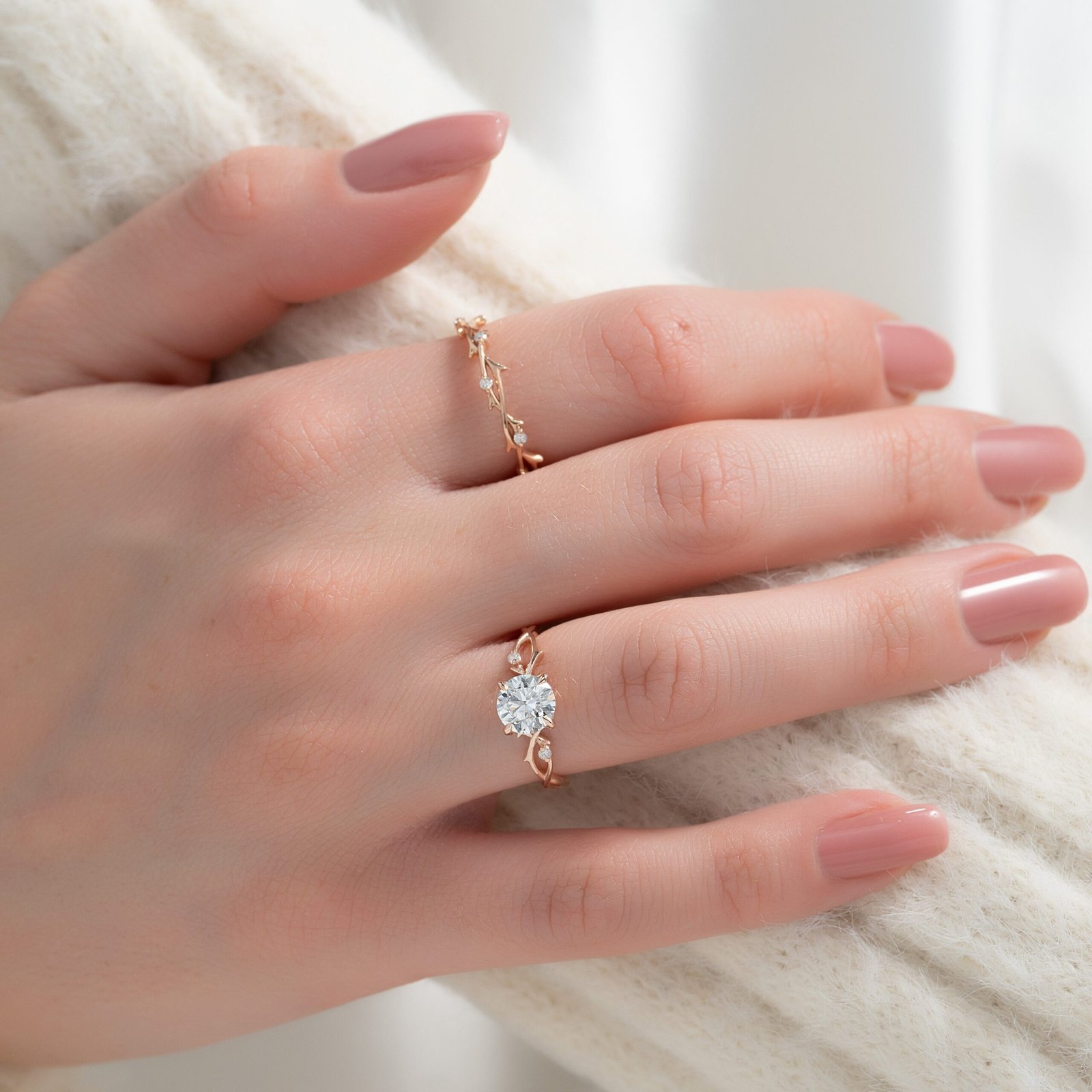 The Twig Set With A 1.0 Carat Round 14K Rose Gold Lab Diamond