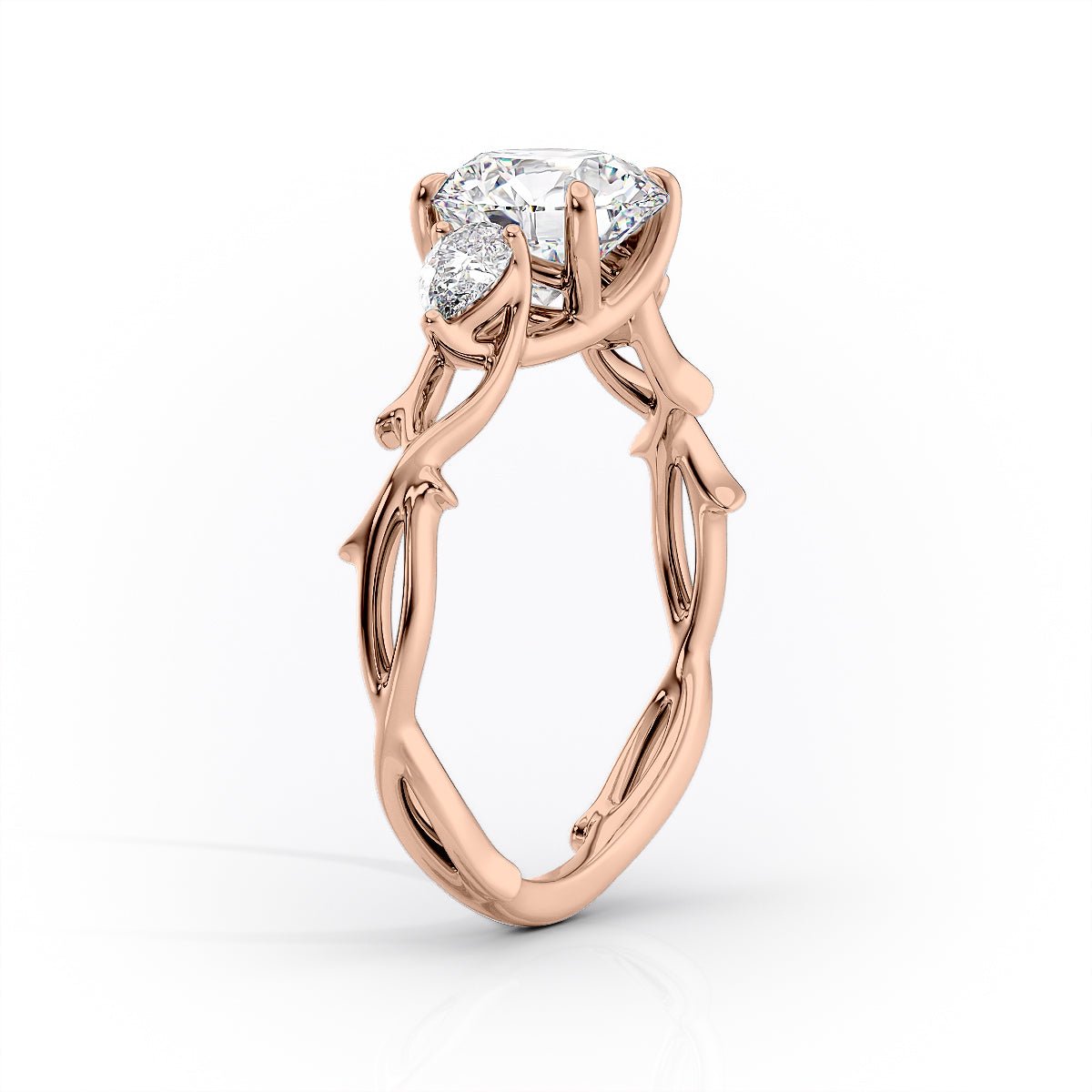 The Three Stone Twig Set With A 1.0 Carat Round 14K Rose Gold Lab Diamond